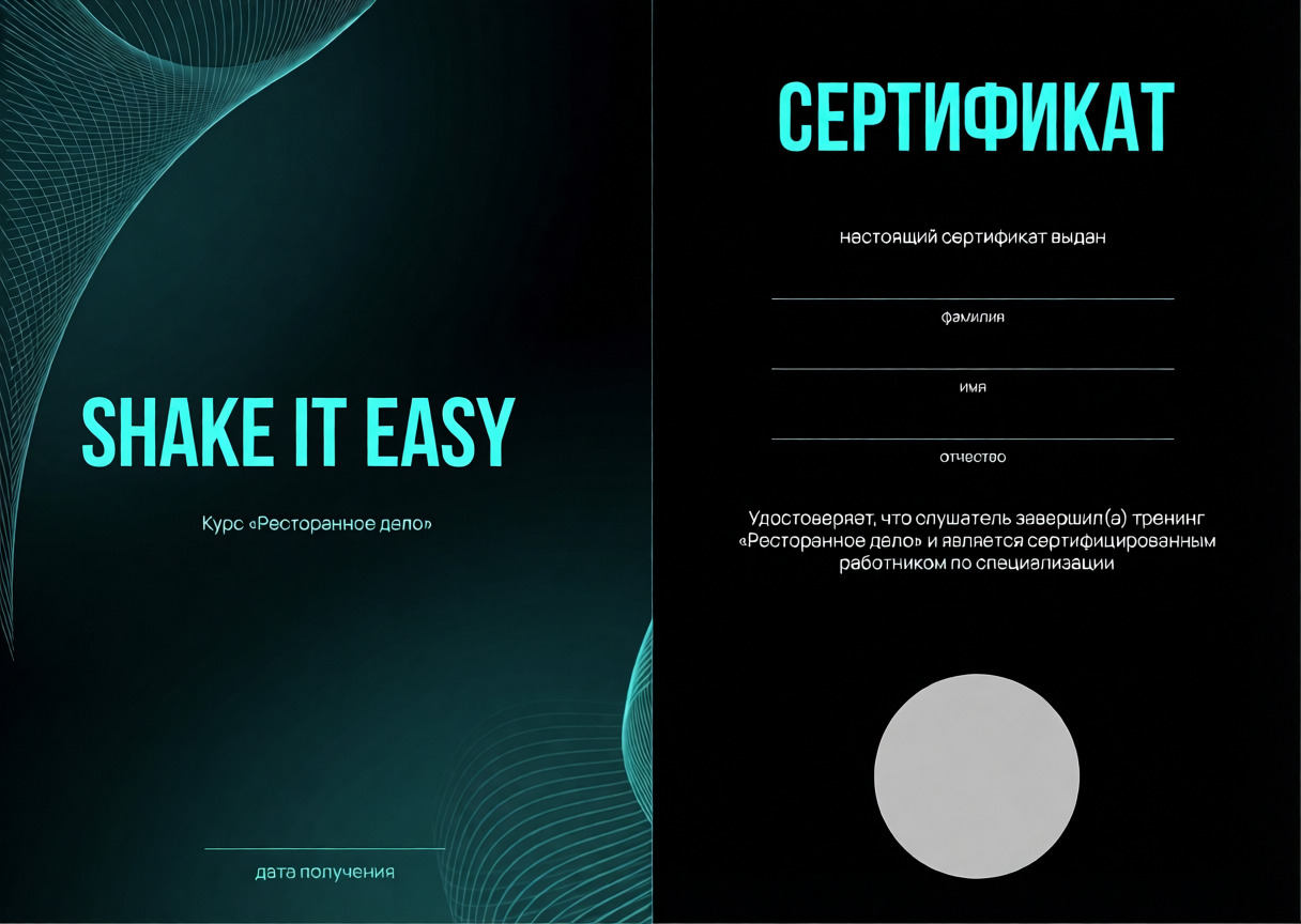 Наша цель — подготовить квалифицированных специалистов, которые будут уверенно работать в разных условиях: от небольших кафе и баров до элитных ресторанов и клубов.